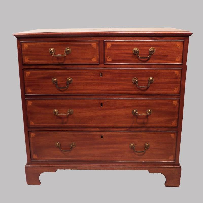 31-22449, PA hepplewhite mahogany 2 over 3 drawers chest, with fan inlay, early 19th century.$3,250