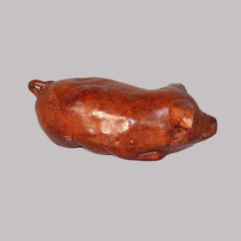 31-22251 Unusual Redware pottery. Hand molded figural pig. PA or OH. 19th century. 3"H x 3 1/2"W.