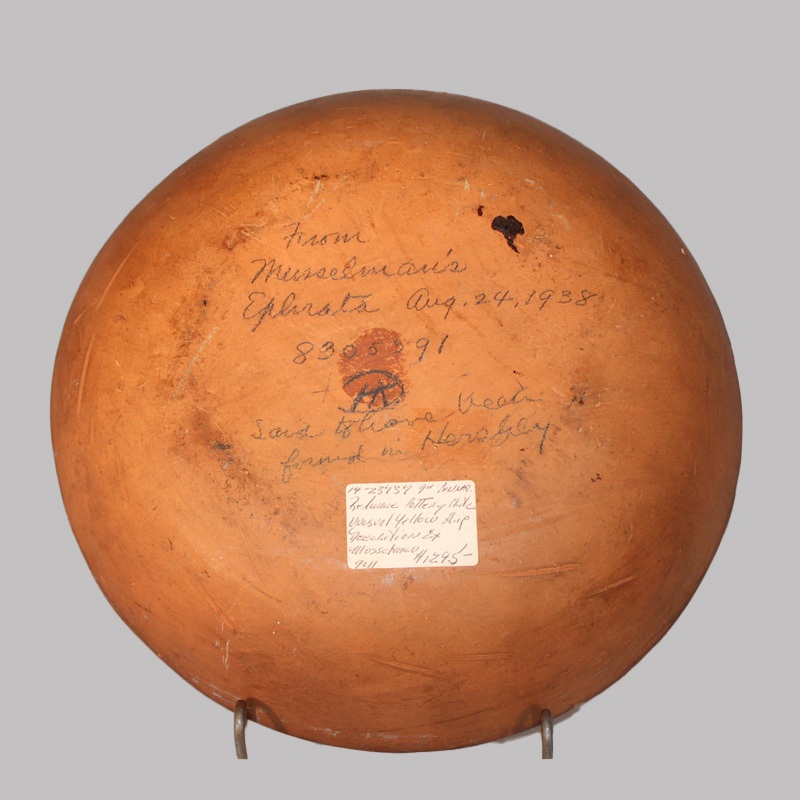 2-10039x, PA Redware tart cup plate, yellow slip decoration. 1,495
